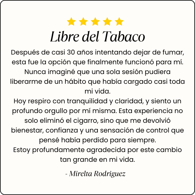Deja de fumar en solo 2 horas y continúa con tu vida libre de humo y de la preocupación constante.